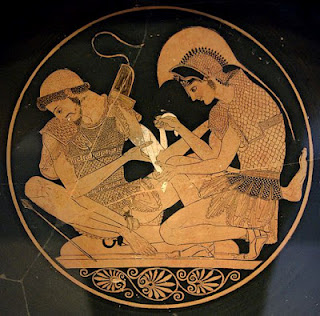 The heart of Miller's story is the time the boys spend with Chiron on Mount Pelion. Going to Pelion is the first substantial risk Patroclus takes for Achilles' sake. His mother Thetis believes Patroclus is too lowborn and too ordinary to be her son's companion, and has expressly forbidden that he accompany Achilles. After a trial period Chiron allows him to stay anyway. Warfare is (perhaps surprisingly) not a focus of Chiron's teaching. Rather, the boys learn music, healing, survival skills and ethics. When the couple is at Troy and living under the shadow of Achilles' imminent death Patroclus frequently recalls conversations they had or skills they learned on Pelion.